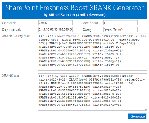 Note: A word of caution. Heavy use of XRANK may impact query performance, but that’s a hardware scaling issue in the land of #ITPro’s, and none of our concern for now :).The formula for freshness is shown at the top of this post, and it’s not that hard to interpret. yFuture is a constant used if item dates appear in the future, which I’m not going to address as we’ll skip time travel of content for now.